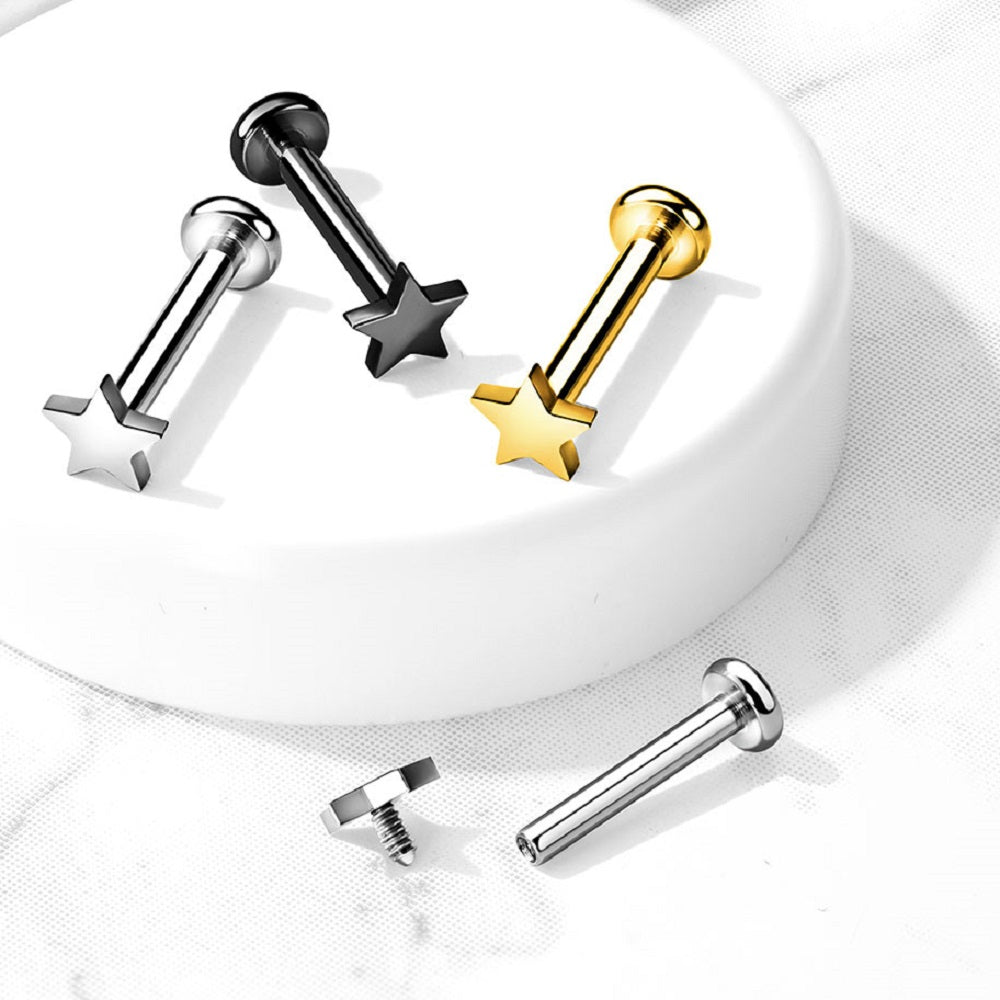 Internally Threaded Flat Star Top Flat Back Stud - F136 G23 Implant Grade Solid Titanium