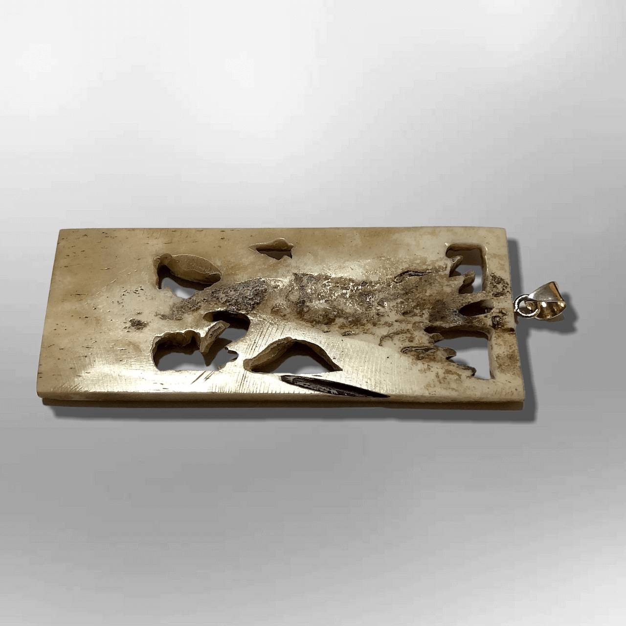 Handmade Bone Carved Long Hollow Rectangle Flying Eagle Pendant - Detailed No Paint Design