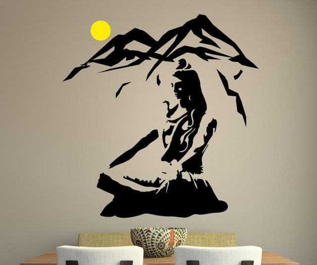 Lord Shiva Wall Sticker - Lotus Pose Vinyl Wall Decal for Mountain Meditation Home Decoration