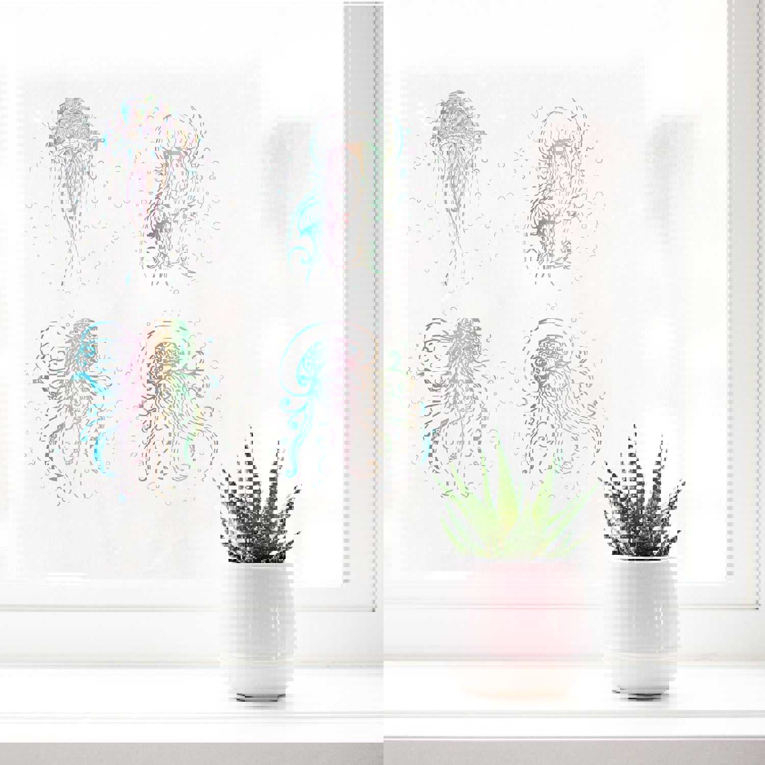 Craspire PVC Wall Sticker Set - Jellyfish Pattern, Round Shape for Window & Stairway Decor (4 Styles, 4pcs/set)