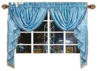 OctoRose 3 pcs Royalty Custom Waterfall Window Valance and Swags & Tails for Wide Windows up to 120 Inches