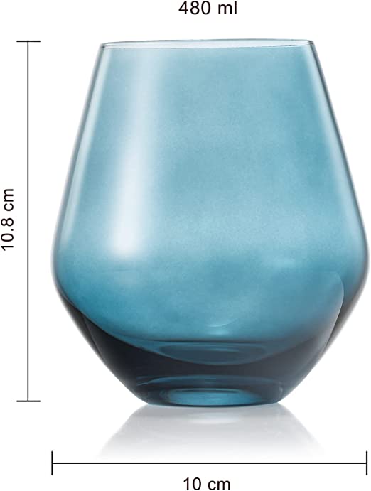 Hand Blown Mexico Condessa Stemless Italian Wine Glasses - Aqua