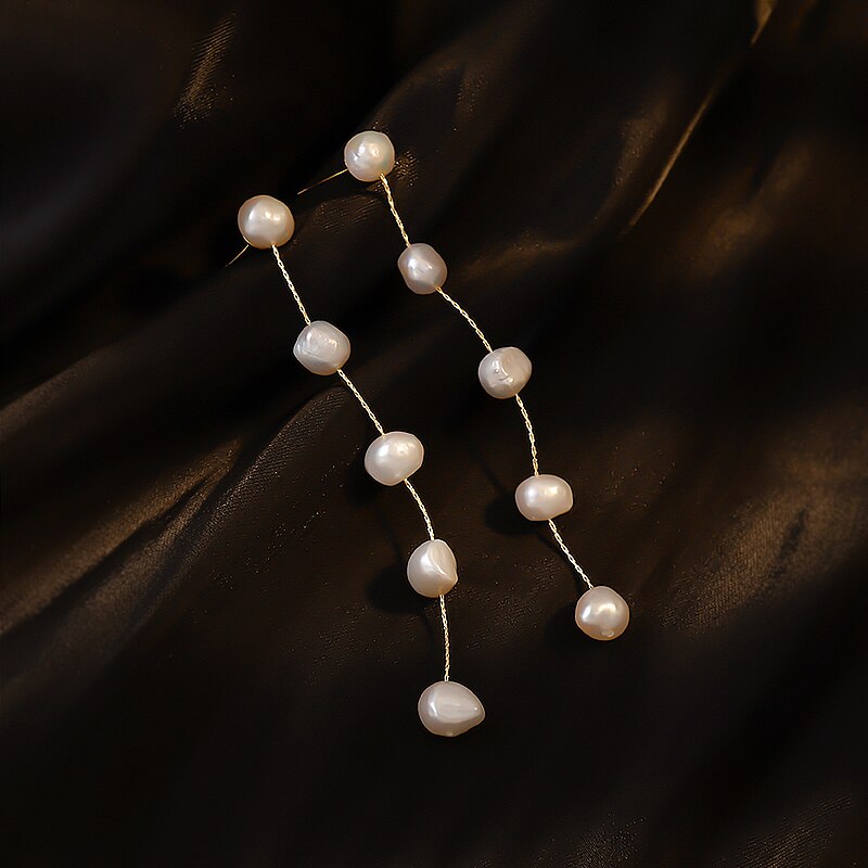 Elegant Freshwater Pearl Drop Earrings for Women - Korea Design Jewelry