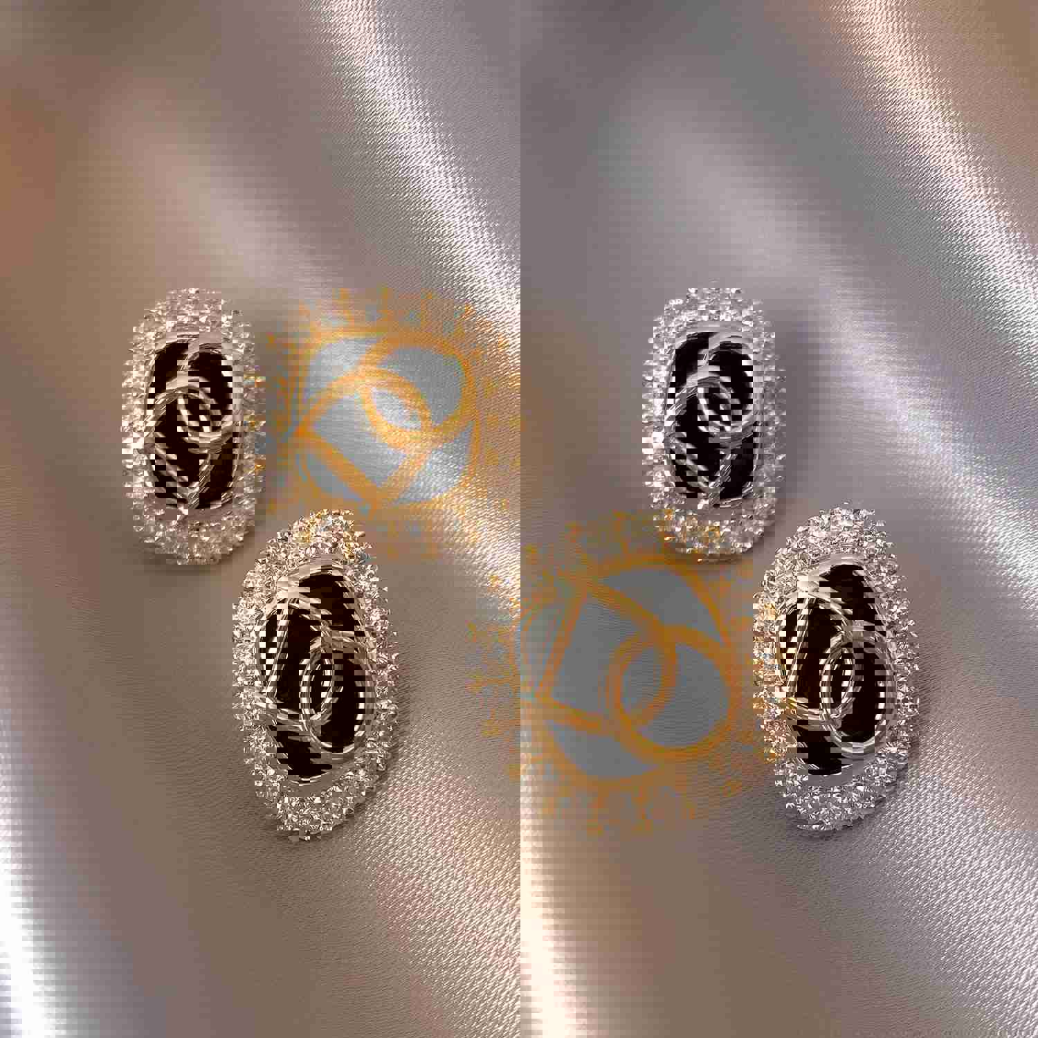 Korean 14K Gold Plated Double Layer Flower Zircon Earrings - Simple & Elegant Women's Daily Work Accessories