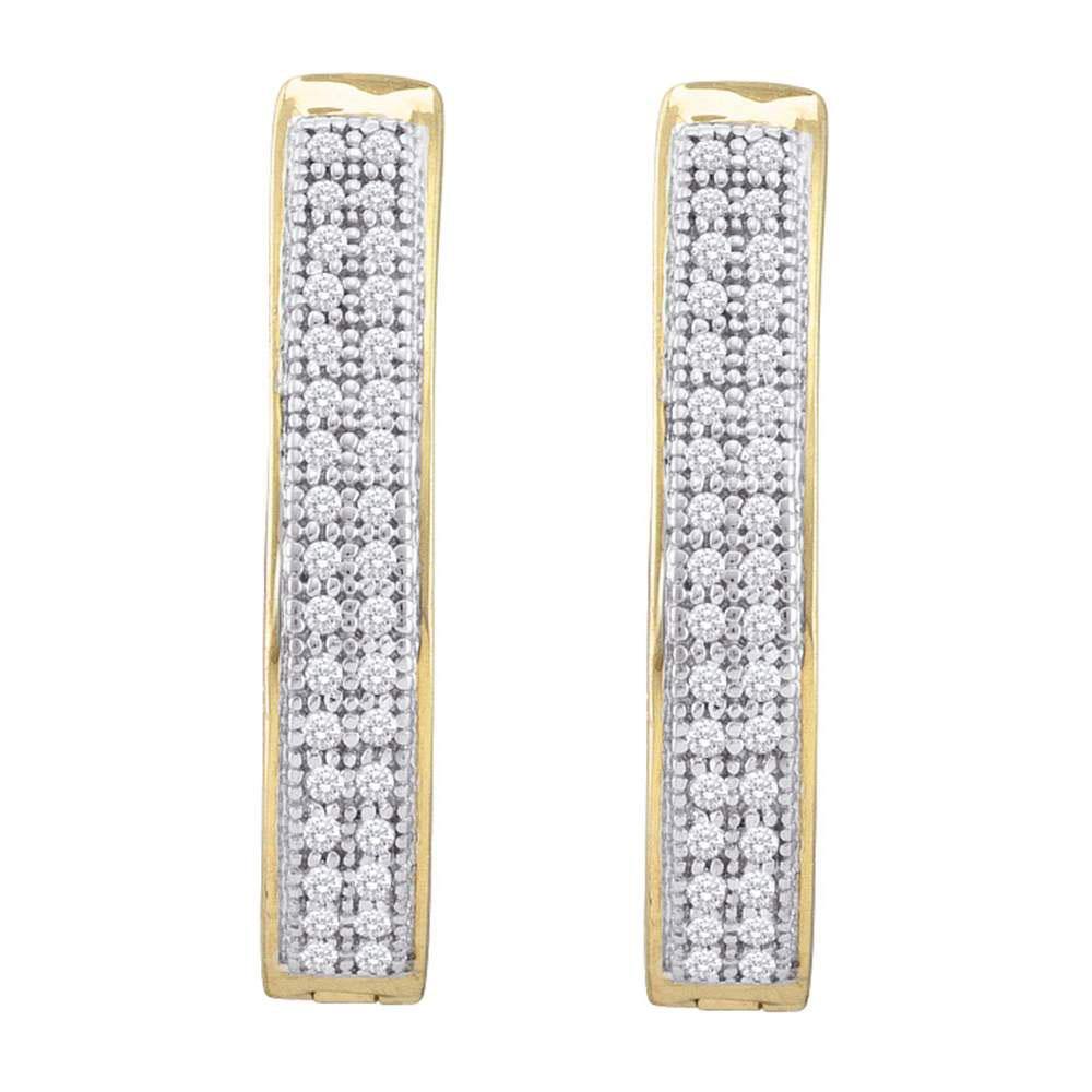 10K Yellow Gold Round Diamond Double Row Hoop Earrings 1/5 Cttw